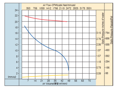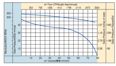 단상과 삼상으로 구분되어, 소음규제에 따라 6극과 8극으로 사용되며 단상인 경우 회전수를 변화시켜 적절한 풍량, 정압을 선택 사용할 수 있습니다.